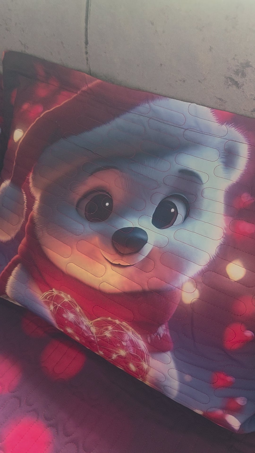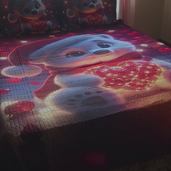 3-Piece 5D Bedspread Set, Christmas Design, Loving Polar Bear, Quilted Cotton