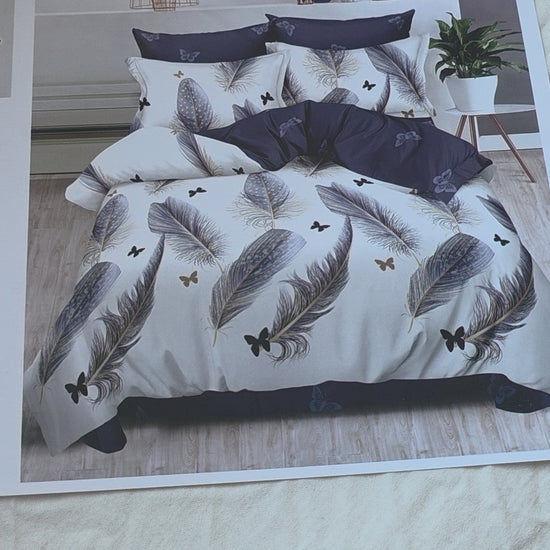 Finet Bed Linen Set, Feather Pattern, 6 Pieces, Universal Size (Double & King), 100% Cotton
