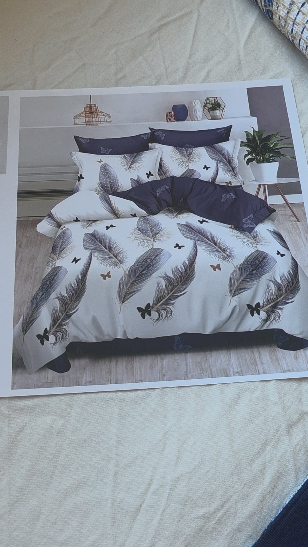 This elegant bed linen set features a beautiful feather pattern and is made from high-quality Finet cotton. The fabric is soft, dense, breathable, and pleasant to the touch, providing comfort throughout all seasons.